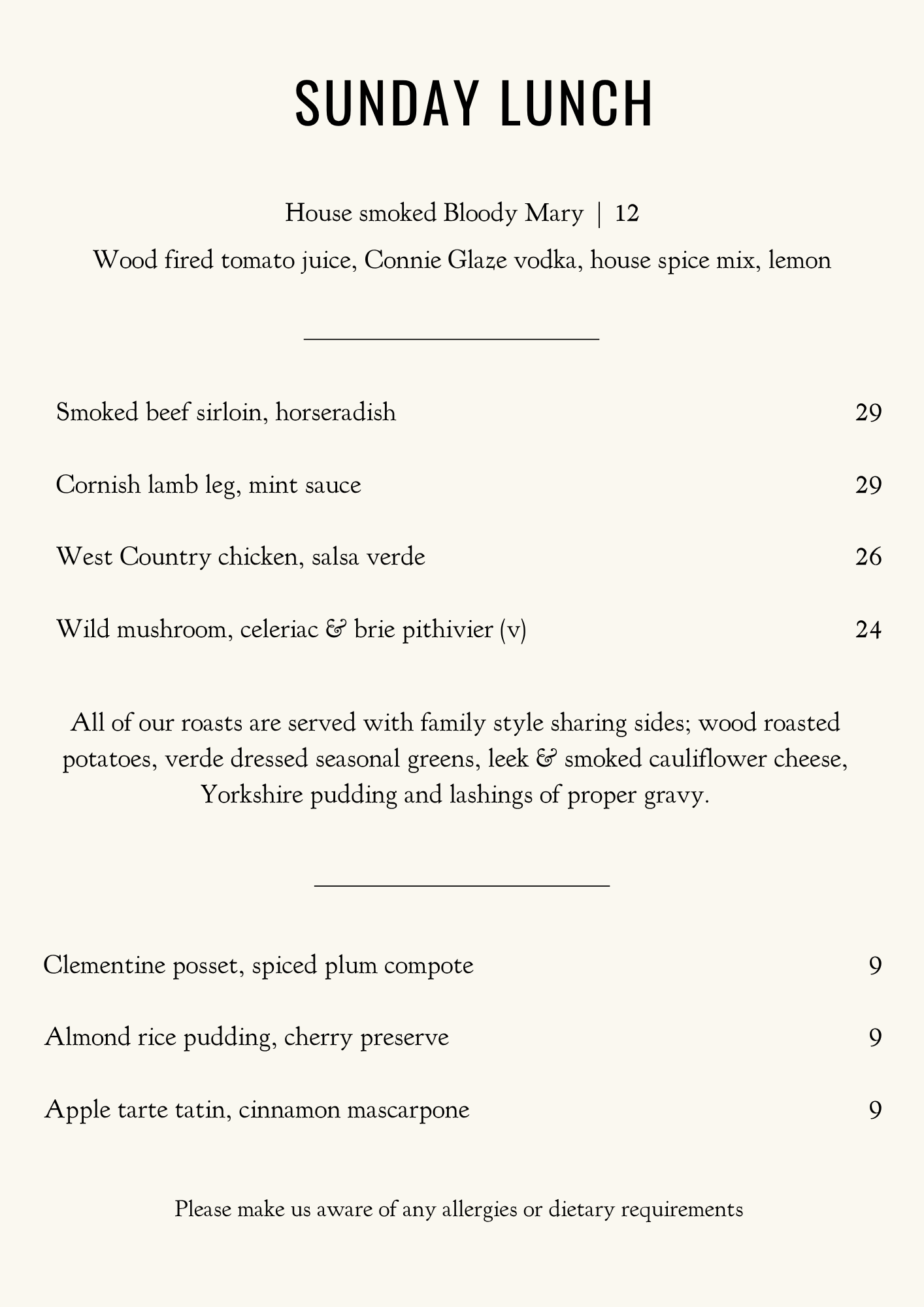 Sunday roast served 12 - 5